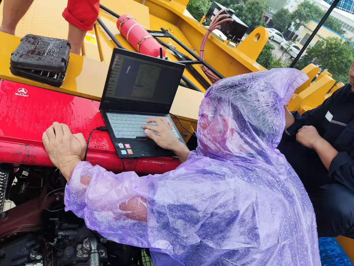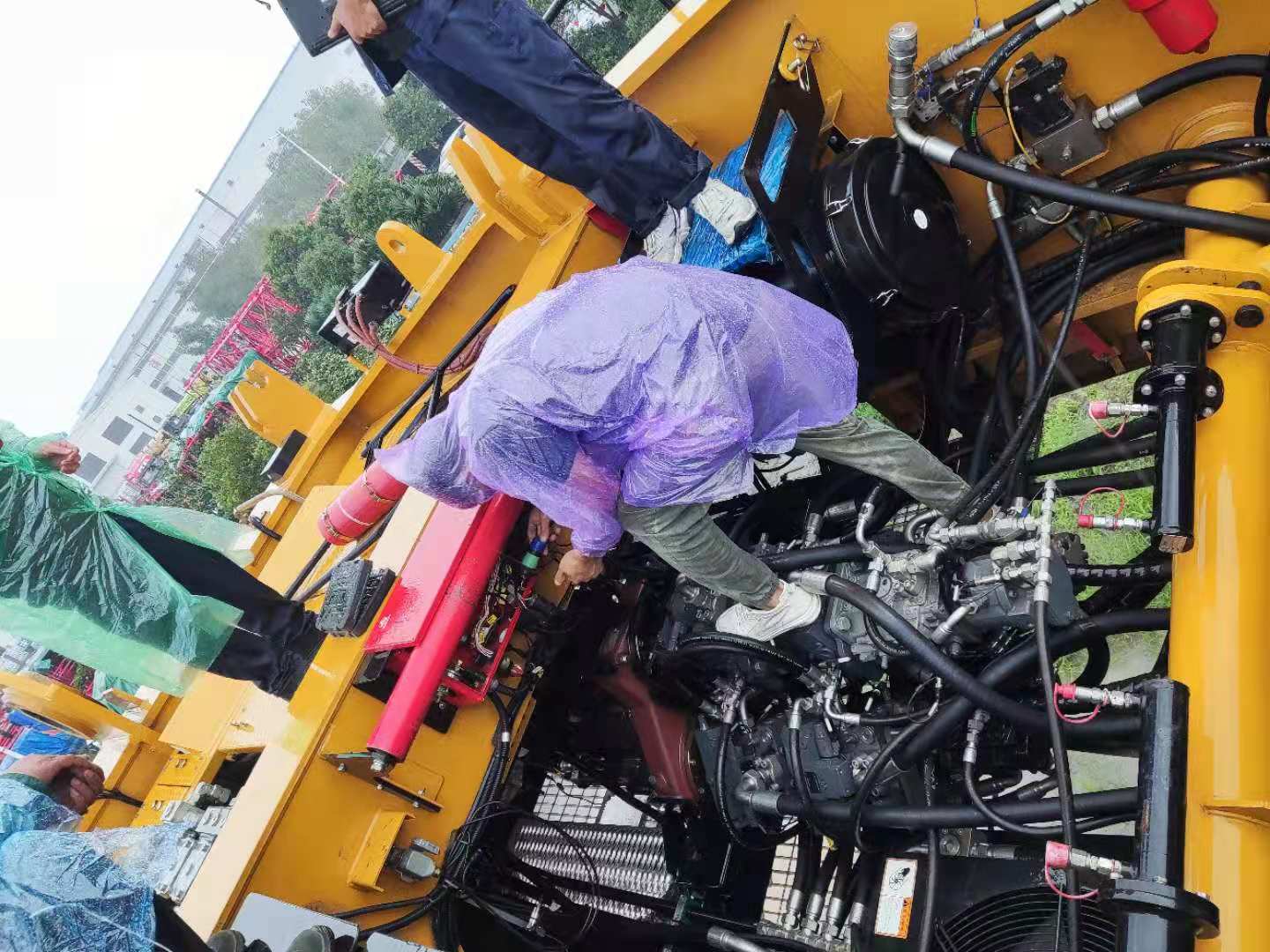 巡檢人員到達(dá)的時候,新鄉(xiāng)已經(jīng)下起了雨,他們只能穿著雨衣,淋著雨對發(fā)動機(jī)進(jìn)行檢查